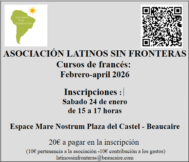 Si le interesa, no dude en venir a conocernos el sábado 24 de enero por la tarde en la sala Mare Nostrum (Plaza del castel, en Beaucaire)